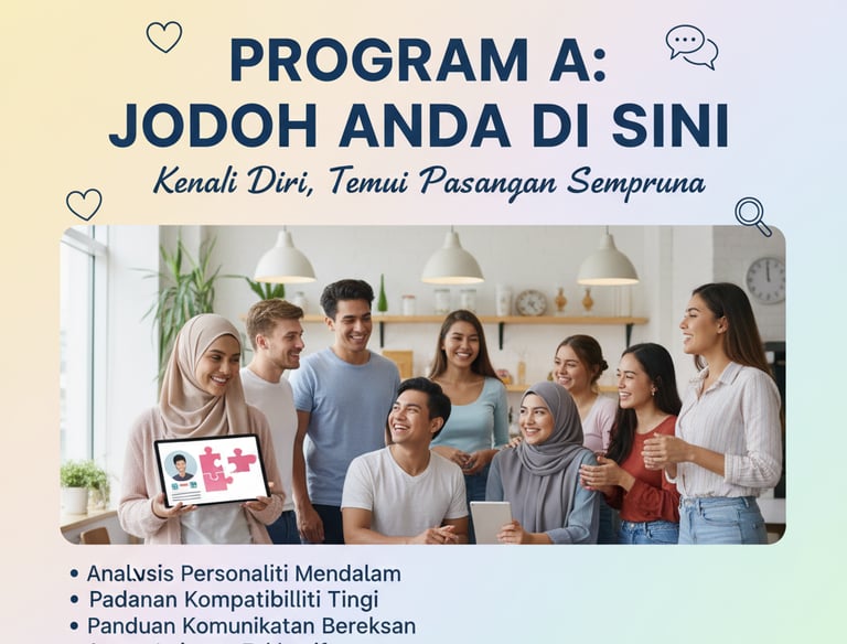 Program A akan membantu anda untuk mencari jodoh yang sesuai dengan personaliti anda dengan lebih mudah dan berkesan.